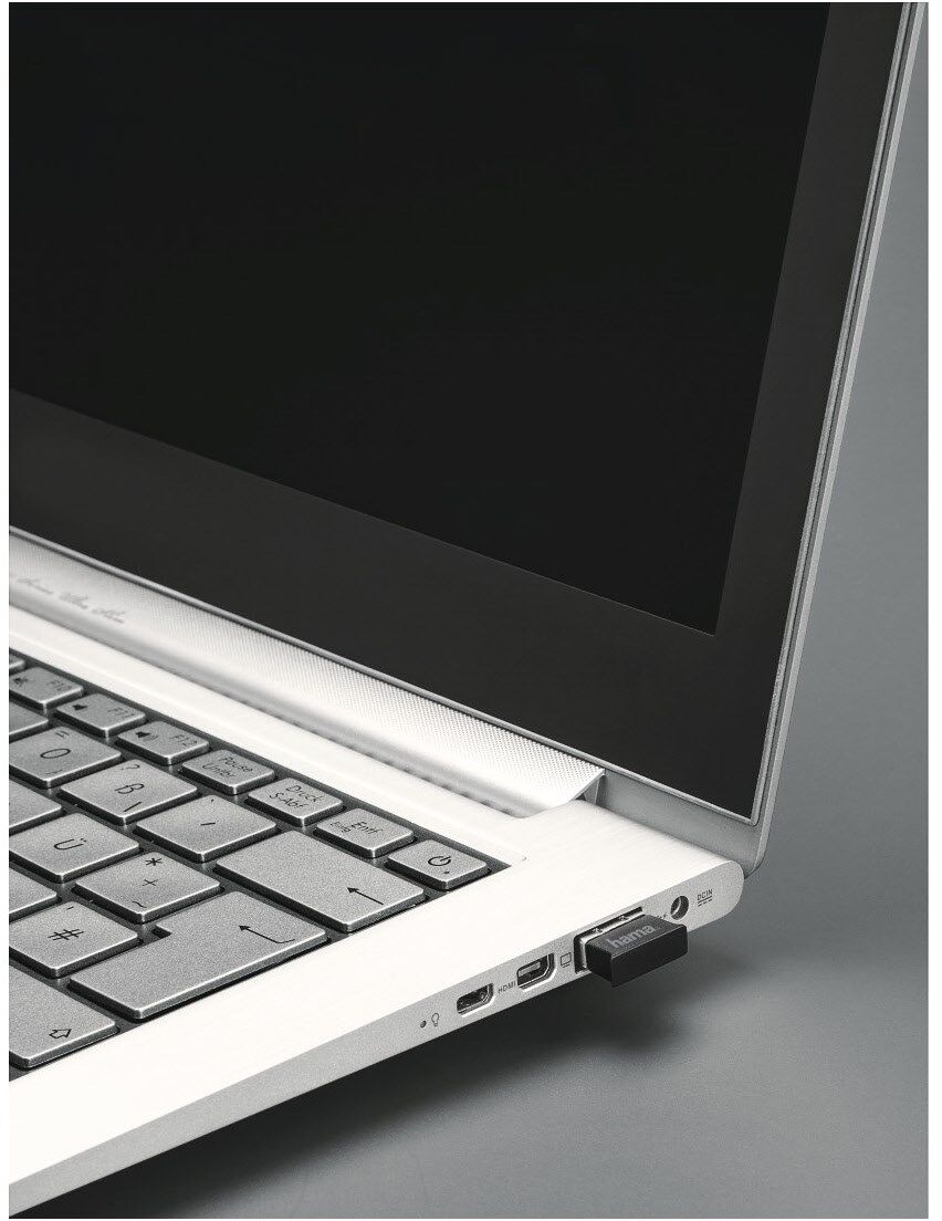 Nicht jedes Gerät hat Bluetooth. Aber dafür gibt es ja Hama mit dem passenden Adapter. Einfach den Bluetooth-Adapter in den USB-Steckplatz stecken, und schon kann es mit der kabellosen Datenübertragung losgehen.