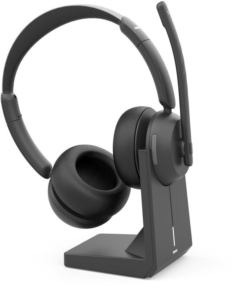 Bluetooth-Headset mit Ladestation für den komfortablen Einsatz im Business-Alltag in Büro und Home-Office: freihändiges Telefonieren ohne Einschränkungen und einfachem Anpassen zwischen Mono- oder Stereo-Modus