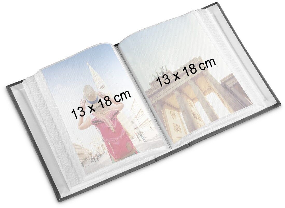 Einband: PU, Albumformat: 14,5 x 19,5 cm, Bildformat/Maximale Fotoanzahl: 13 x 18 cm / 100