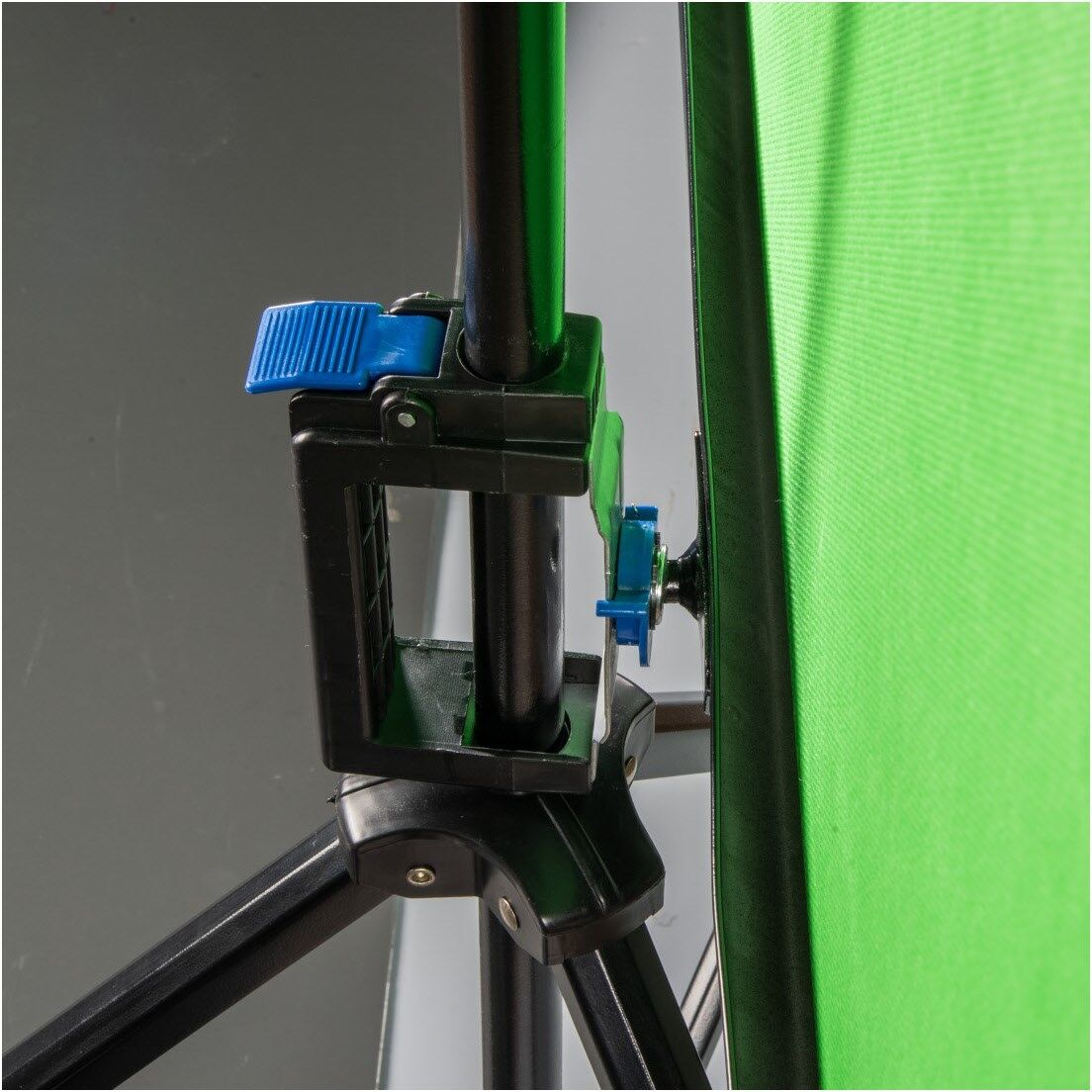 Der Green-Screen-Hintergrund mit Schnellverschluss lässt sich vom Stativ abnehmen und individuell aufhängen
