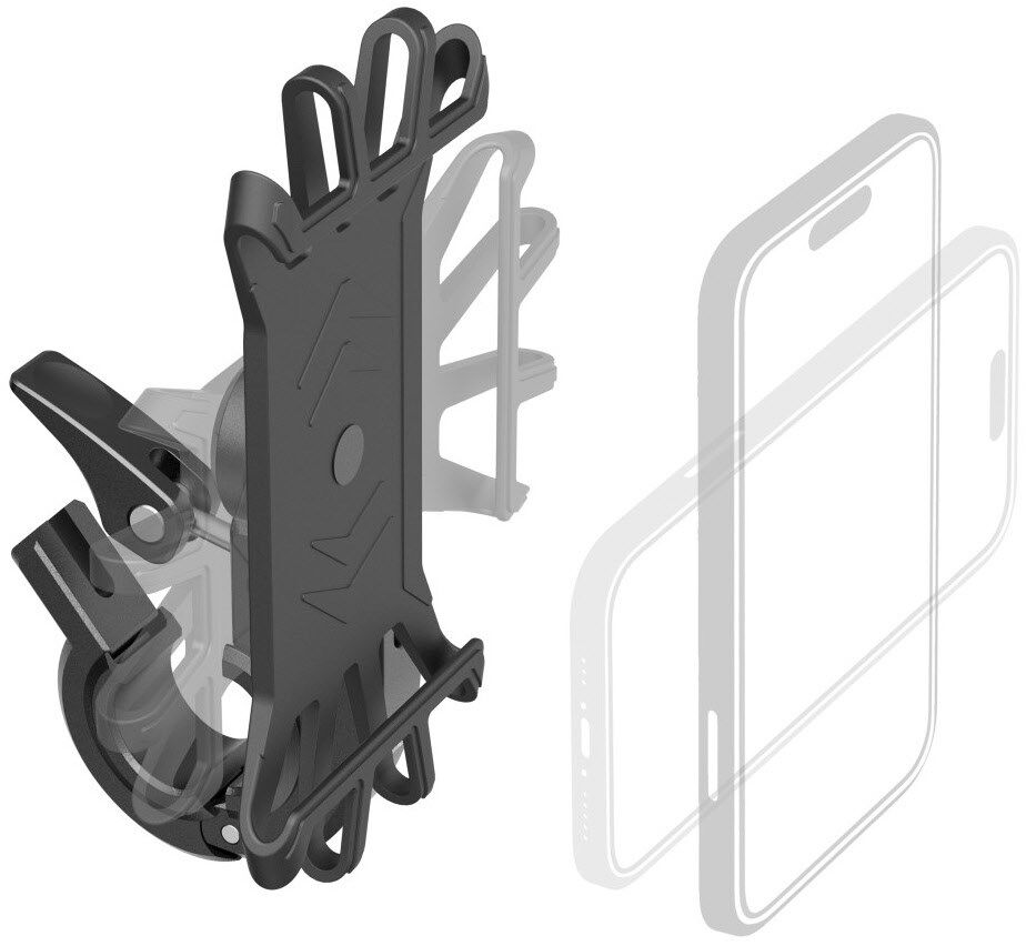 Schnell und einfach anbringen, starker Halt für unterwegs: flexible Handyhalterung zur sicheren Befestigung eines Smartphones an der Lenkstange eines E-Bikes, Pedelecs, Fahrrads oder E-Scooters