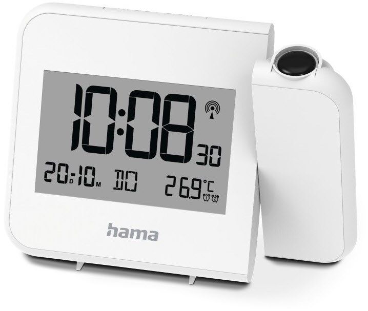 Digitaler Funkwecker mit Projektion von Uhrzeit, Weckzeit, Datum und Temperatur, wahlweise mit Wand oder Deckenprojektion