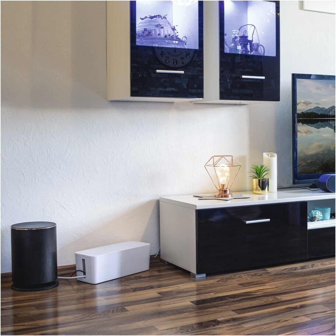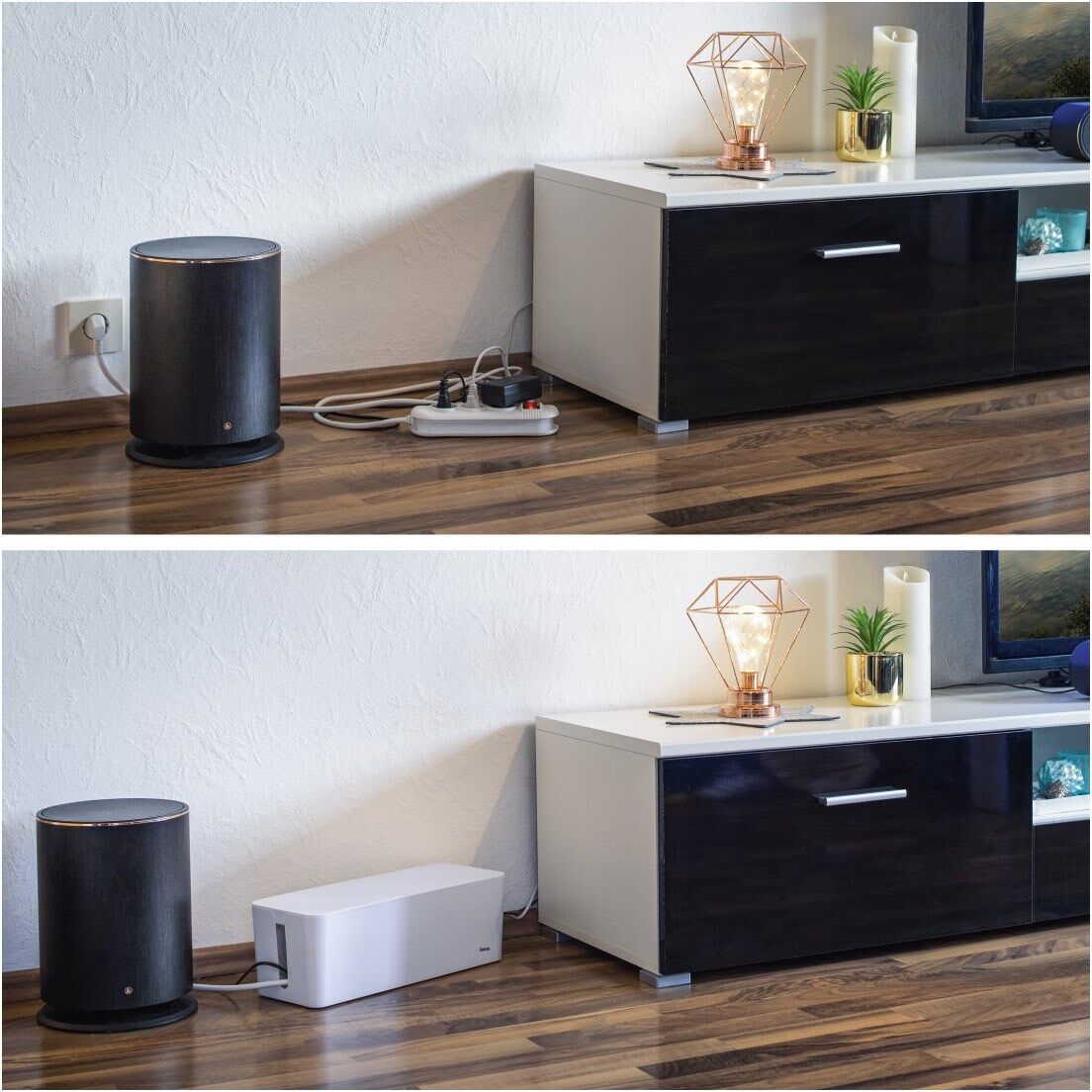 Universell einsetzbare Kabelmanagement-Box: z.B. auf dem Boden oder auf dem Tisch platzierbar