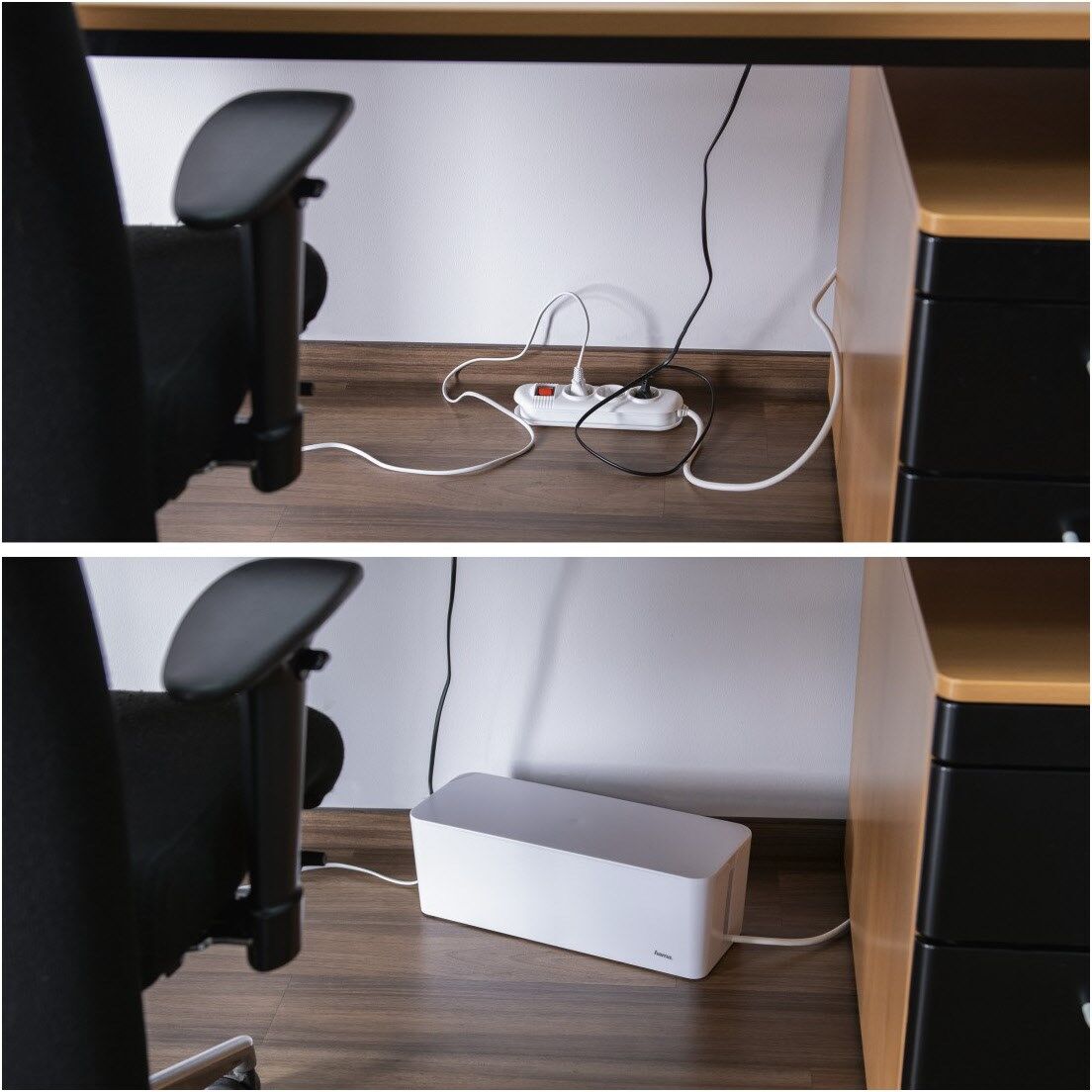 Aufgeräumtes Kabelmanagement: Kabelsalat samt Steckdosenleiste ordentlich verstecken