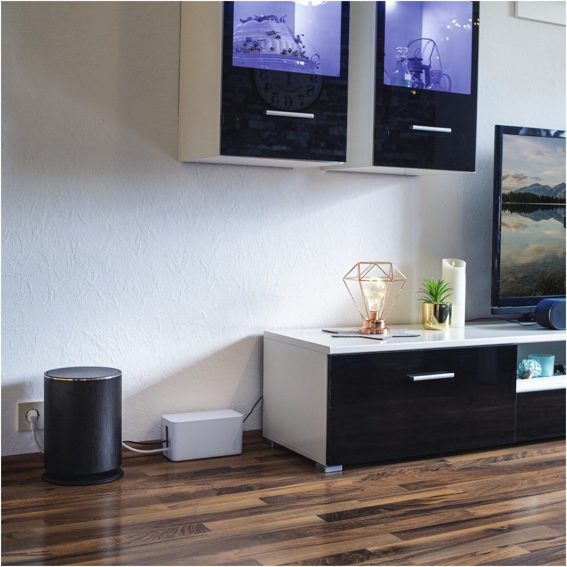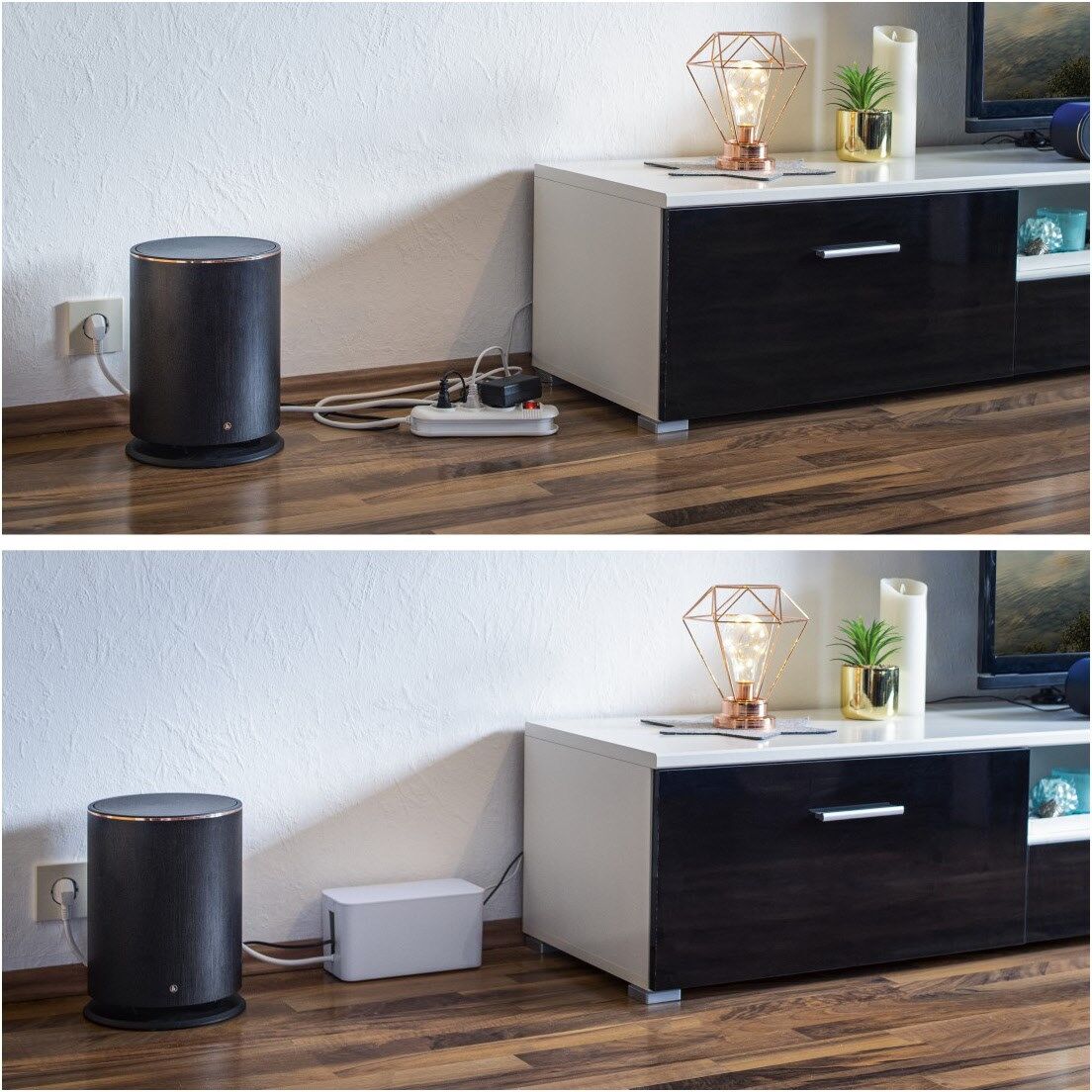 Universell einsetzbare Kabelmanagement-Box: z.B. auf dem Boden oder auf dem Tisch platzierbar
