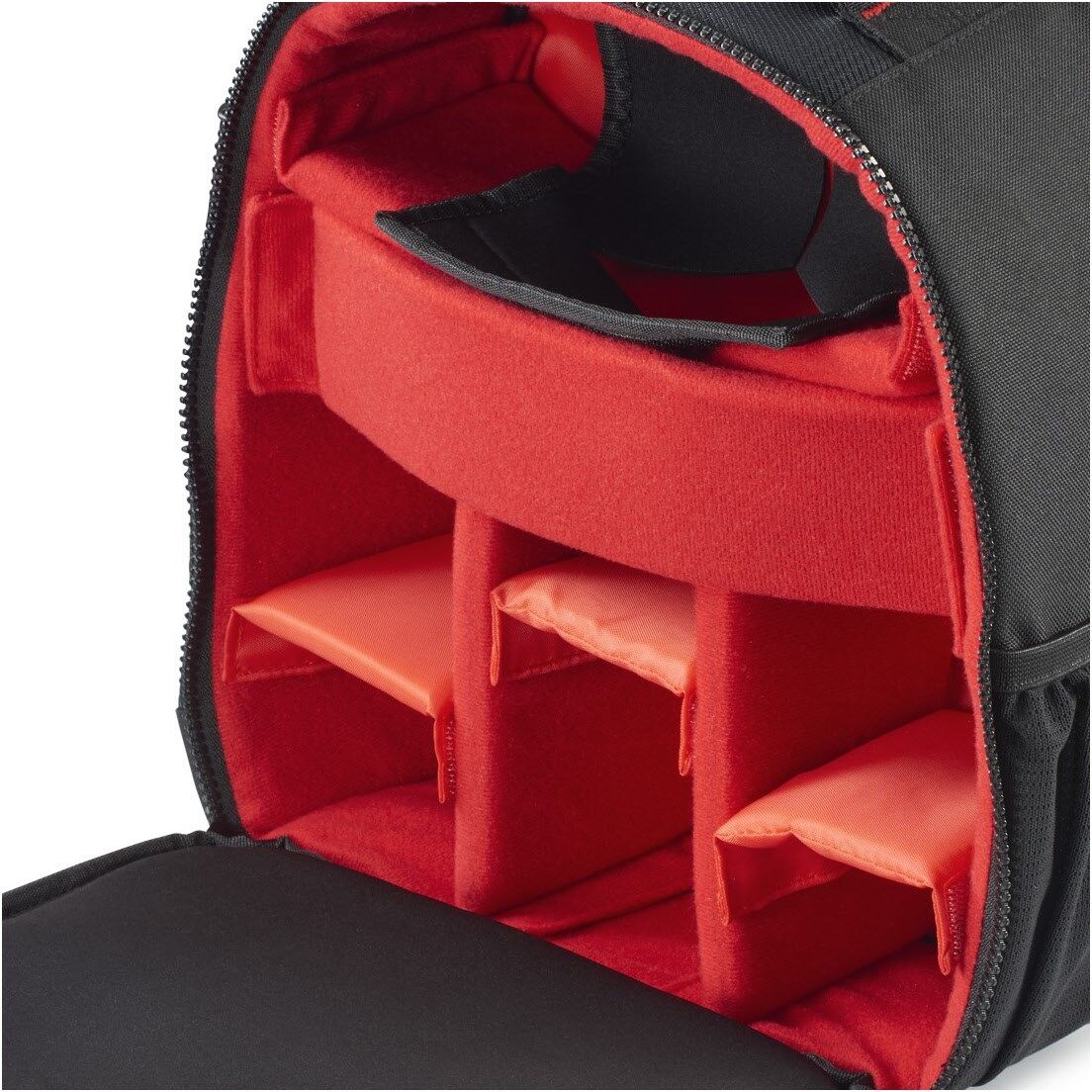 6 herausnehmbare Inneneinteiler im Kamerafach, 1 Einteiler aus Neopren mit Klettverschluss fixiert die Kamera