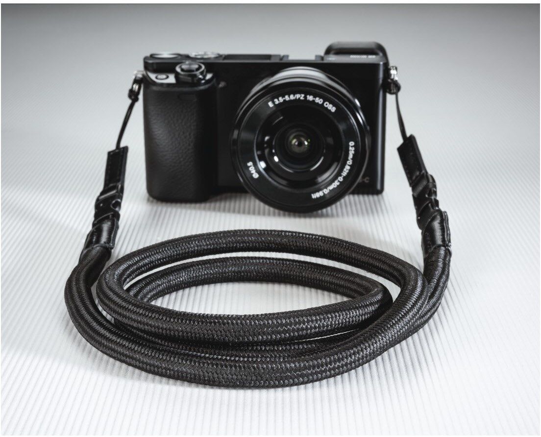 Elastischer Kameragurt aus reißfestem Nylon ist angenehm zu tragen