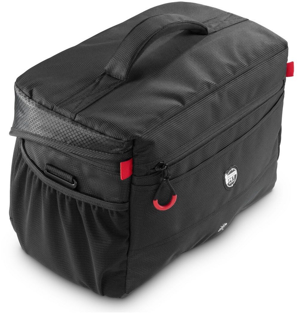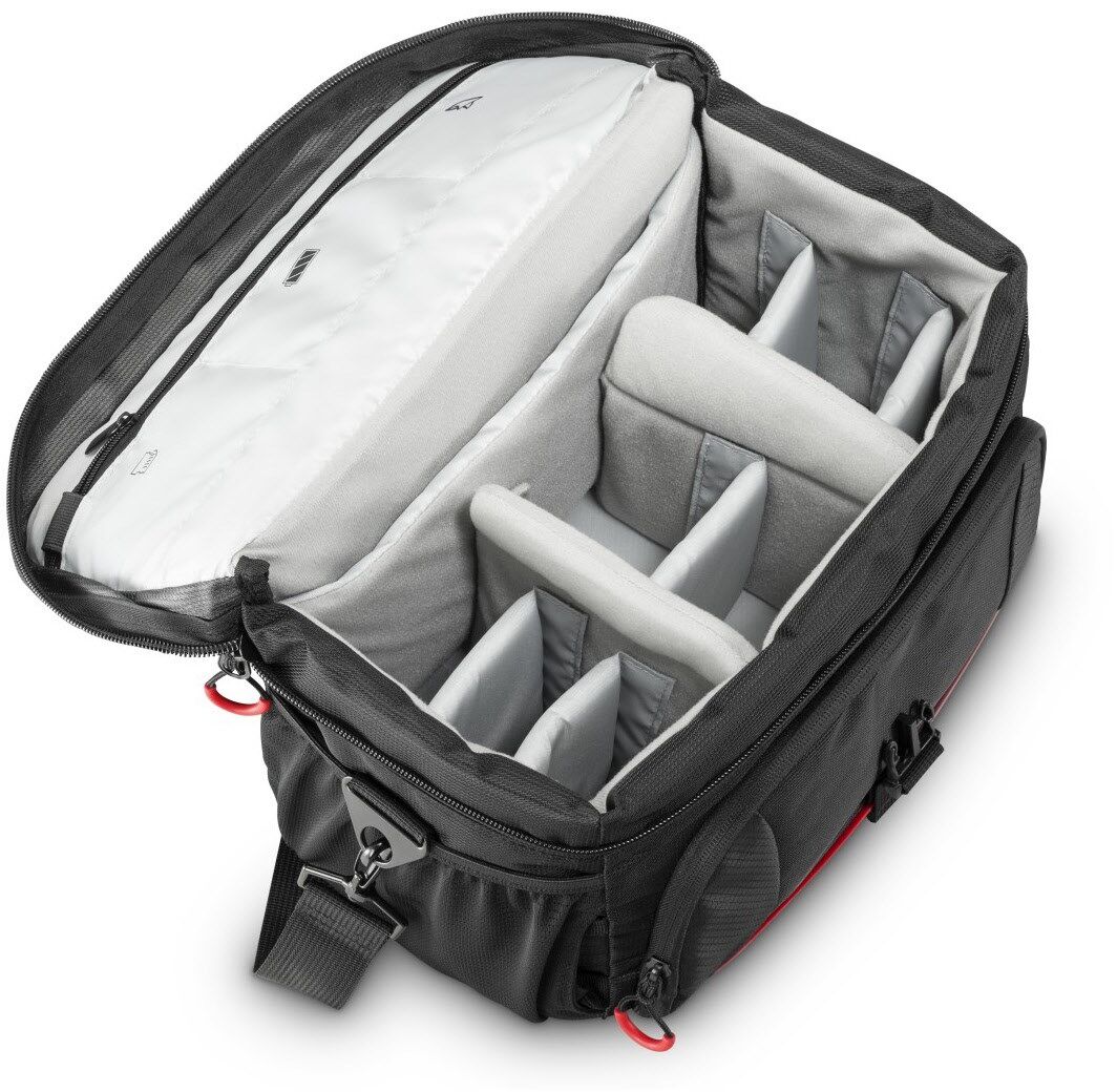 Reißverschlussfach auf dem Deckel, zusätzliches Reißverschlussfach unter dem Deckel für z.B. Speicherkarten, Reißverschlussfach an der Taschenrückseite