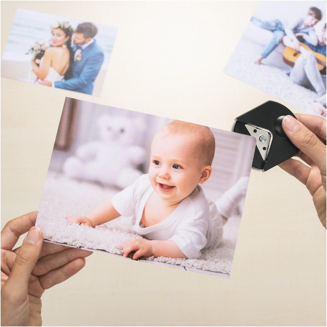 Inklusive Eckenrunder, um die Kanten von Papier sowie laminierten Dokumenten abzurunden