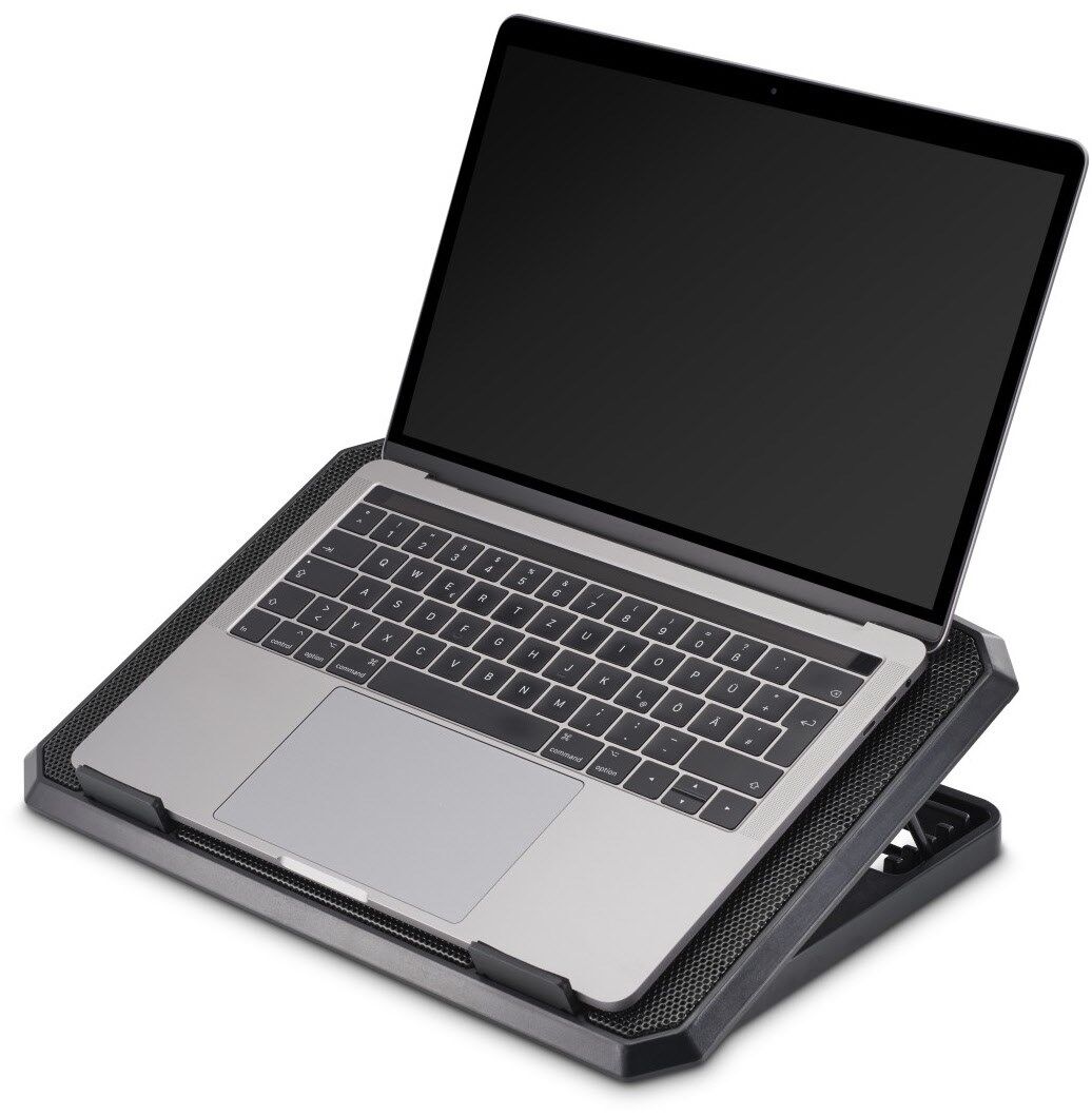 Praktische Laptop-Unterlage zur Kühlung Ihres Laptops und zum optimalen Abtransport der Wärme mit individuell einstellbarem Neigungswinkel zur komfortablen Nutzung des Laptops auf dem Tisch oder am Arbeitsplatz