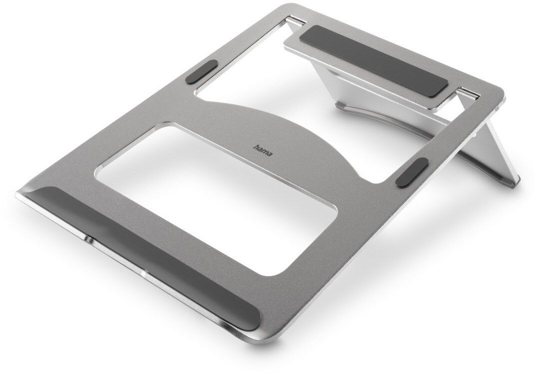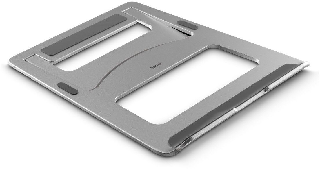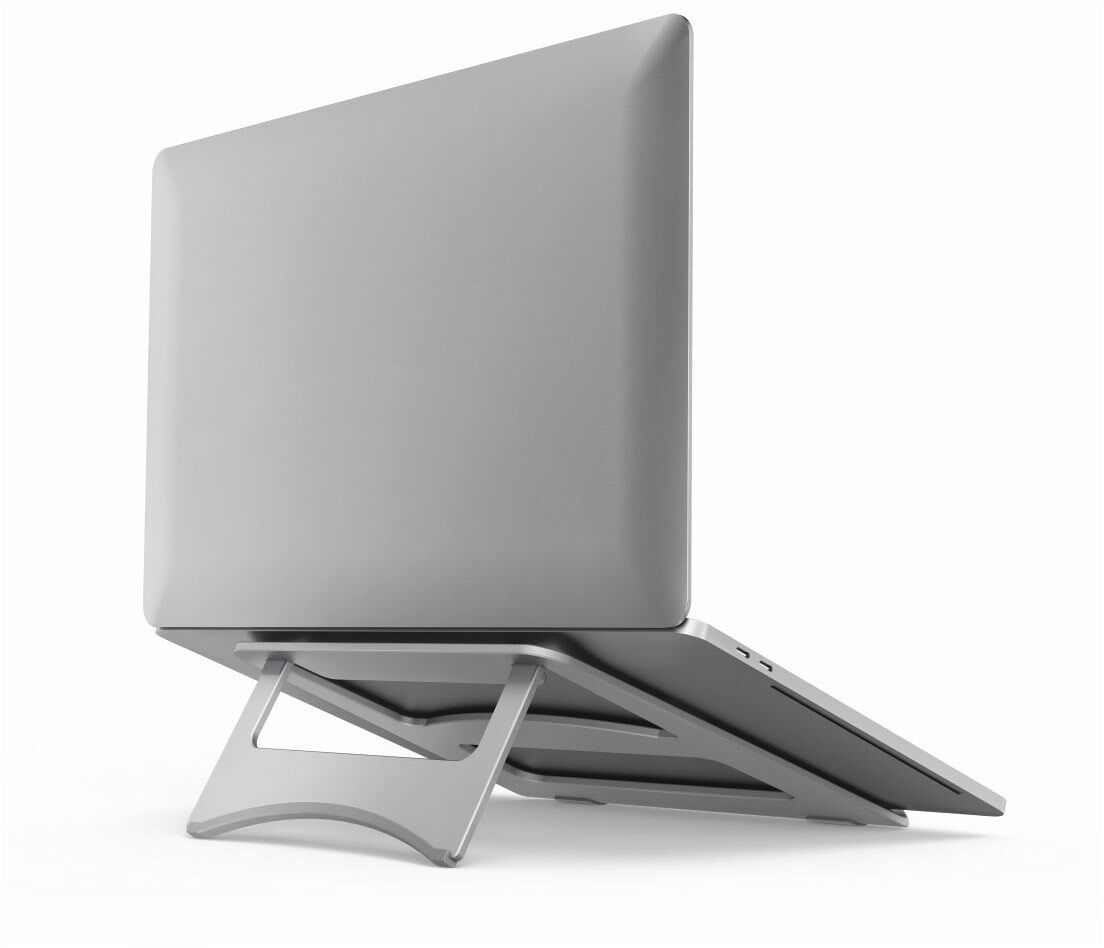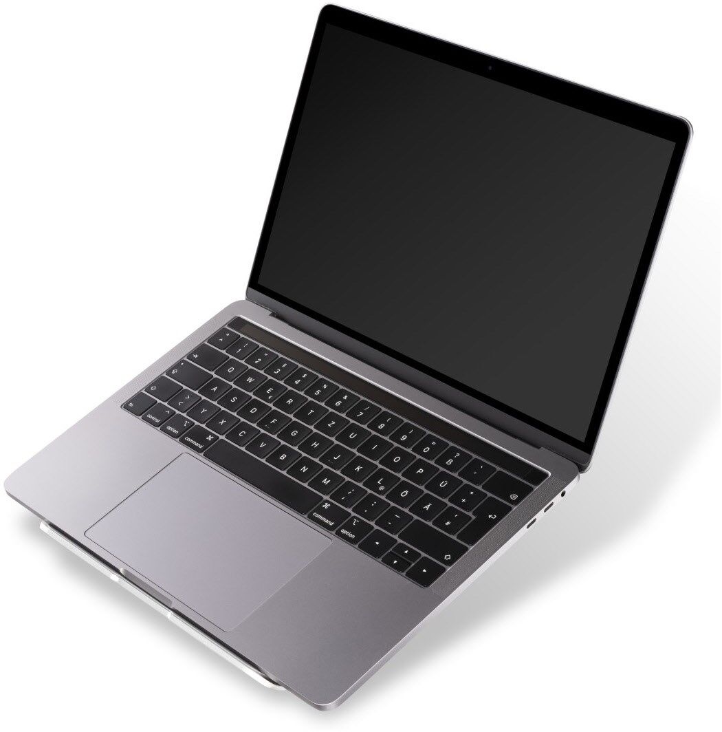 Praktischer Laptop-Stand in edler Aluminium-Optik mit angenehmem Neigungswinkel zur komfortablen Nutzung des Laptops auf dem Tisch oder am Arbeitsplatz