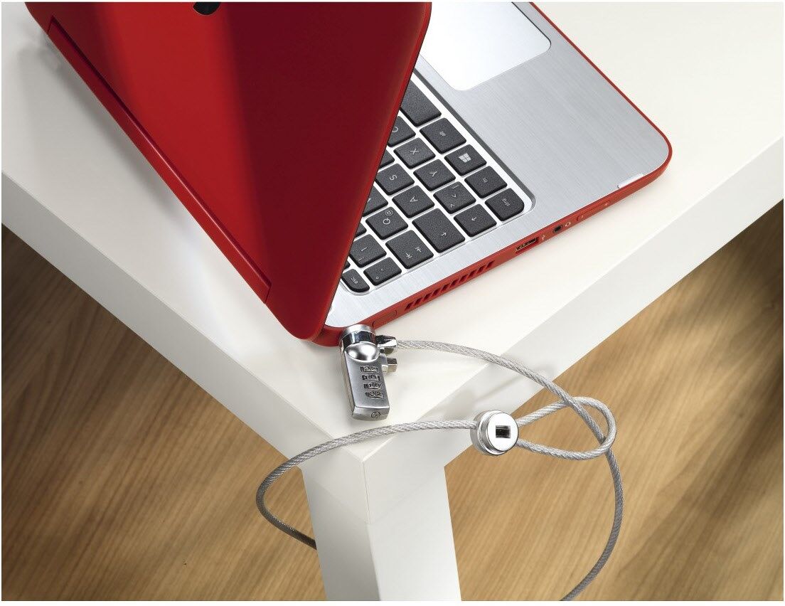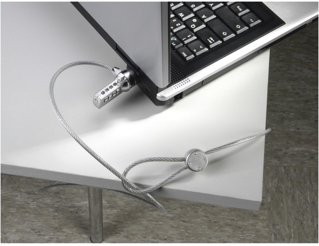 Einfache Handhabung: Laptopschloss lässt sich flexibel anbringen und z.B. an Möbeln wie Tischen, Stühlen etc. befestigen