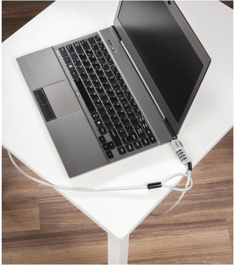Einfache Handhabung: Laptopschloss lässt sich flexibel anbringen und z.B. an Möbeln wie Tischen, Stühlen etc. befestigen