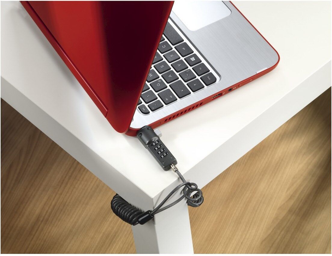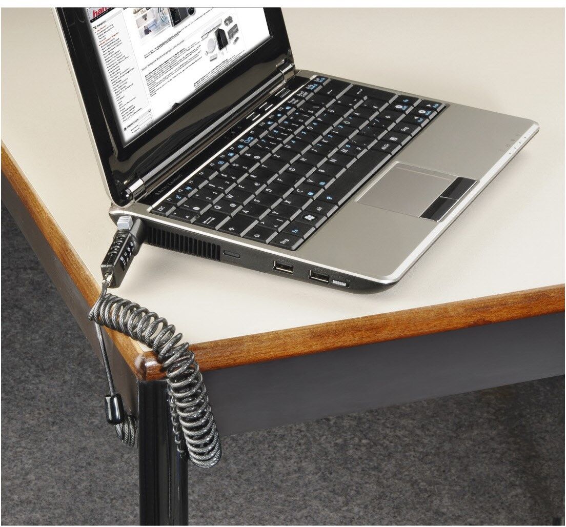 Einfache Handhabung: Laptopschloss lässt sich flexibel anbringen und z.B. an Möbeln wie Tischen, Stühlen etc. befestigen