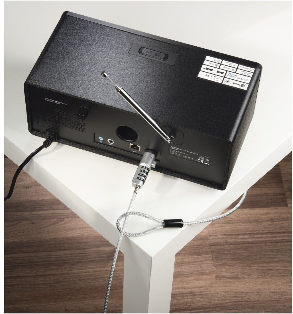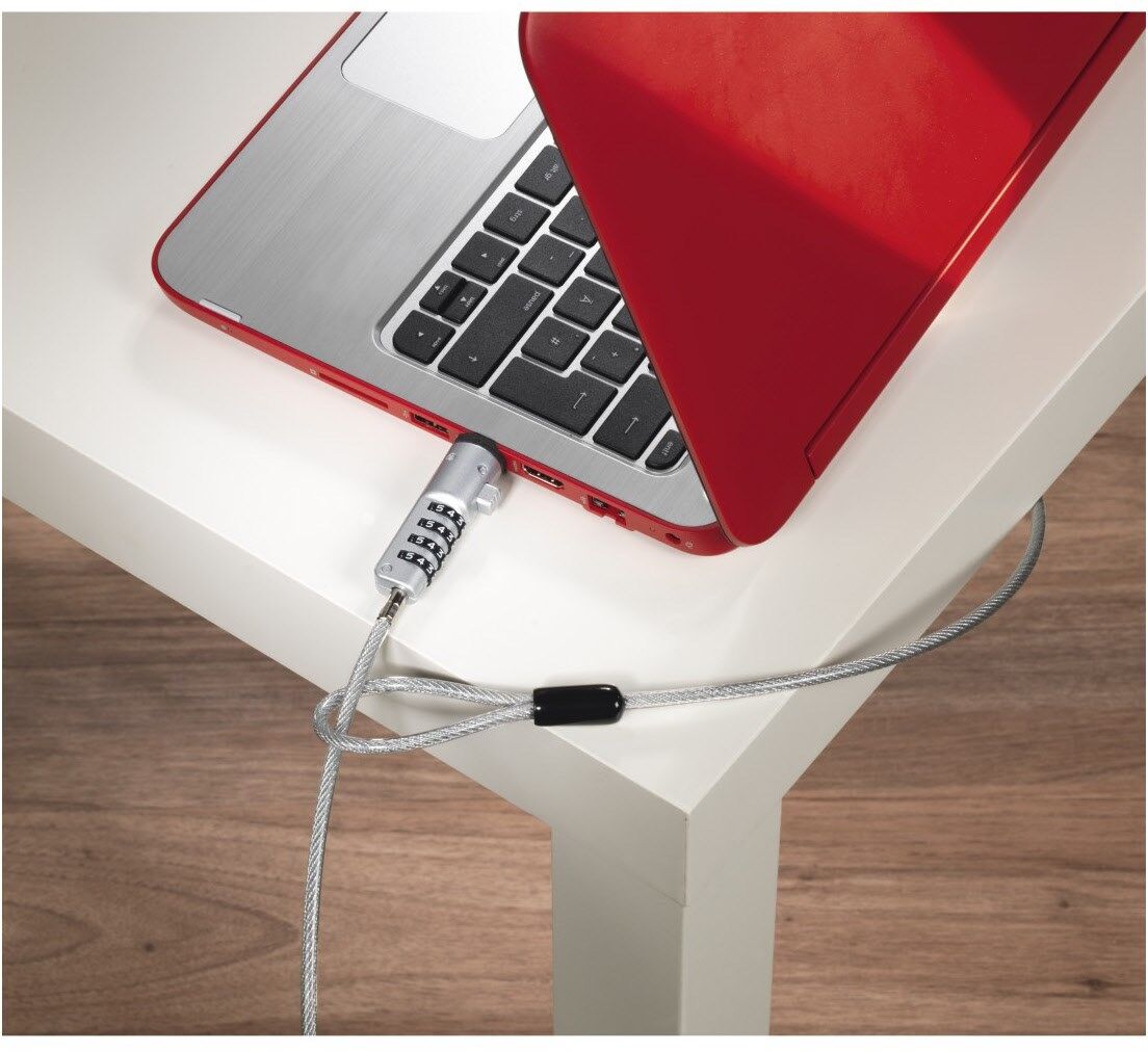Einfache Handhabung: Laptopschloss lässt sich flexibel anbringen und z.B. an Möbeln wie Tischen, Stühlen etc. befestigen
