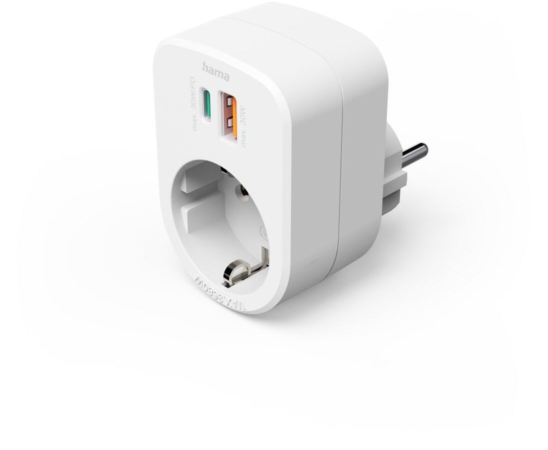 Schutzkontakt-Steckdose plus USB-Mehrfachstecker nach gängigen Standards: USB-Stecker für Steckdose mit Typ A sowie eine USB-C-Buchse, ideal für Ladekabel ohne zusätzliches Netzteil