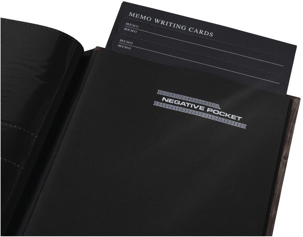 Schwarze Innenseiten mit Einstecktaschen und Beschriftungsstreifen zum schnellen und einfachen Archivieren