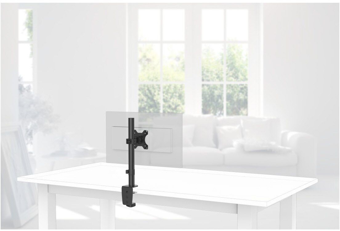 Kompatibel für Bildschirme bis zu VESA 100x100, stufenlos um bis zu +45°/- 45° neigbar, bis zu 180° schwenkbar an 2 Gelenken, Tischbefestigung mit Klemmschraube (Tischplattenstärke bis max. 8,5 cm)