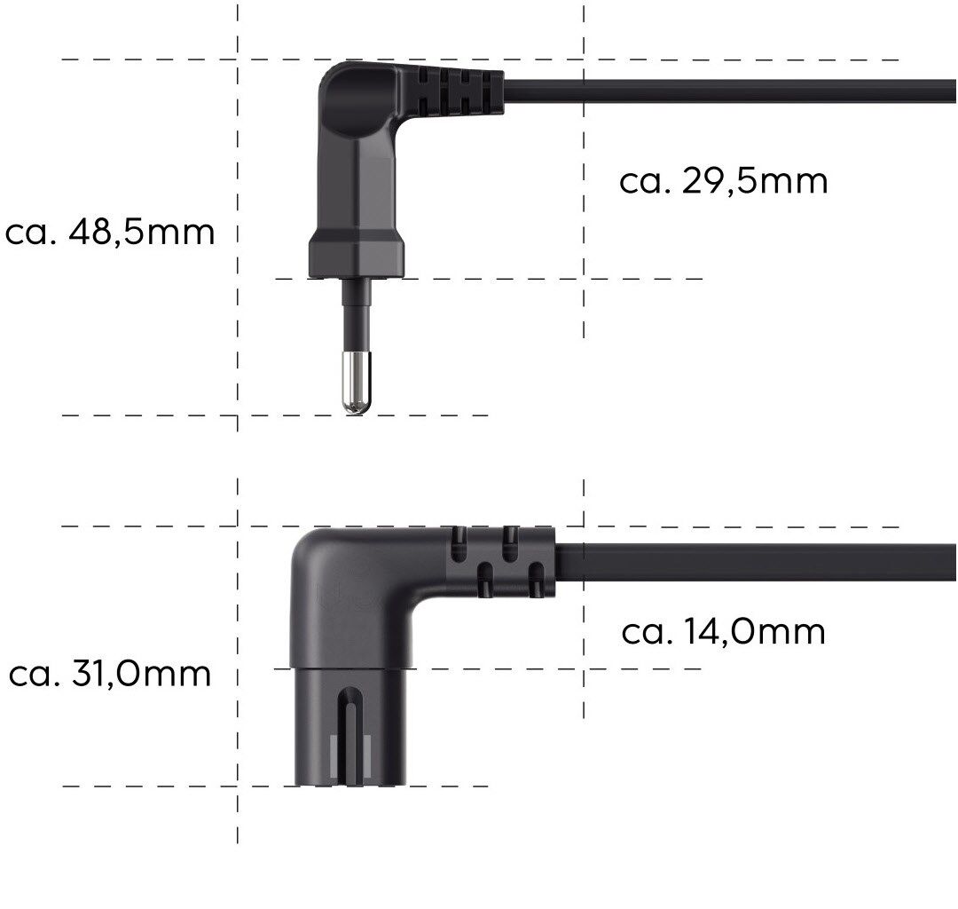 Winkelstecker mit Anschlussbuchse nach Europa-Norm: Euro 8 auf Doppelnut (C7)
