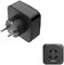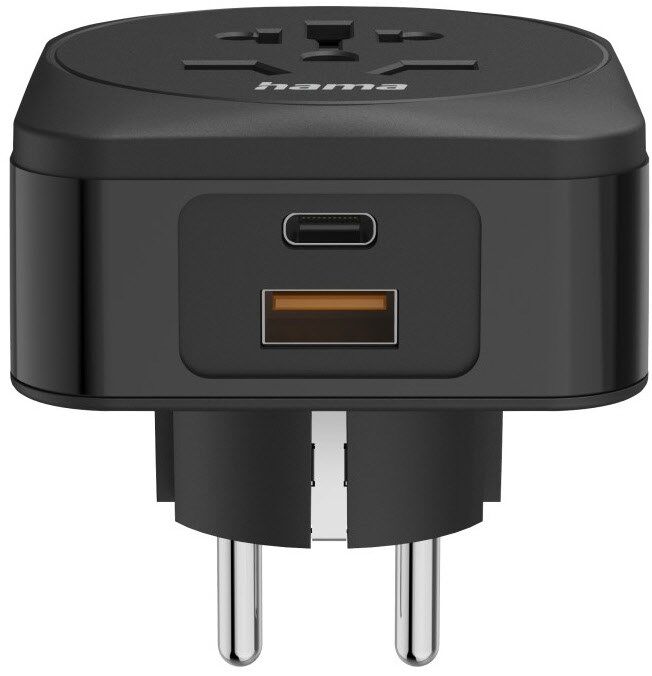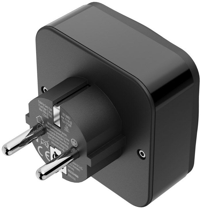Ermöglicht sowohl den Anschluss von Elektrogeräten mit abweichenden Steckertypen in Ländern mit deutschem und französischem Steckdosensystemen als auch das Laden von zwei weiteren Geräten wie Handy oder Tablet über USB