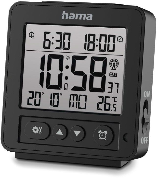 Präziser DCF-Funkwecker mit digitaler Anzeige von Uhrzeit, Weckzeit, Datum und Temperatur