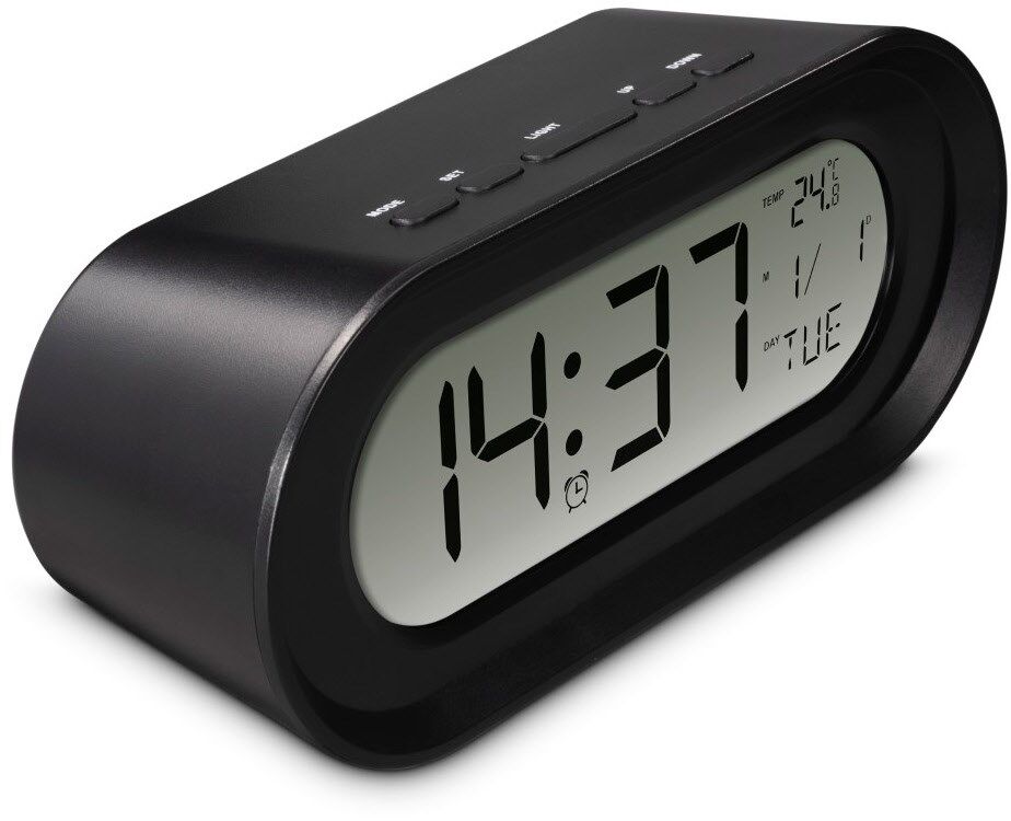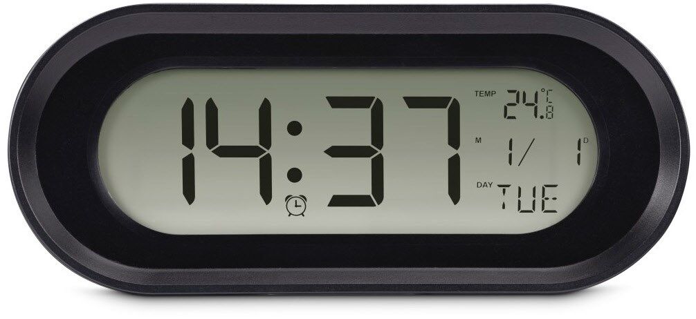 Wecker mit digitaler Anzeige von Uhrzeit, Datum, Wochentag und Temperatur
