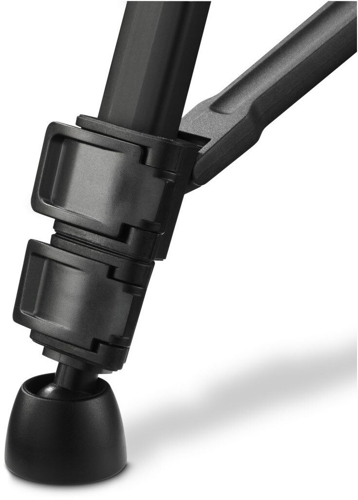 Feststellbare Querstreben und flexible Gummifüße für sicheren Stand auf unebenen Flächen