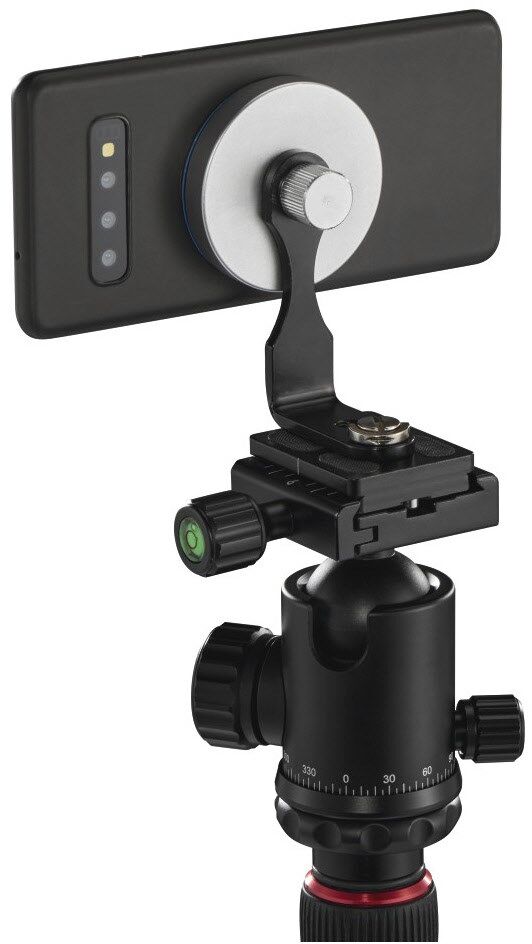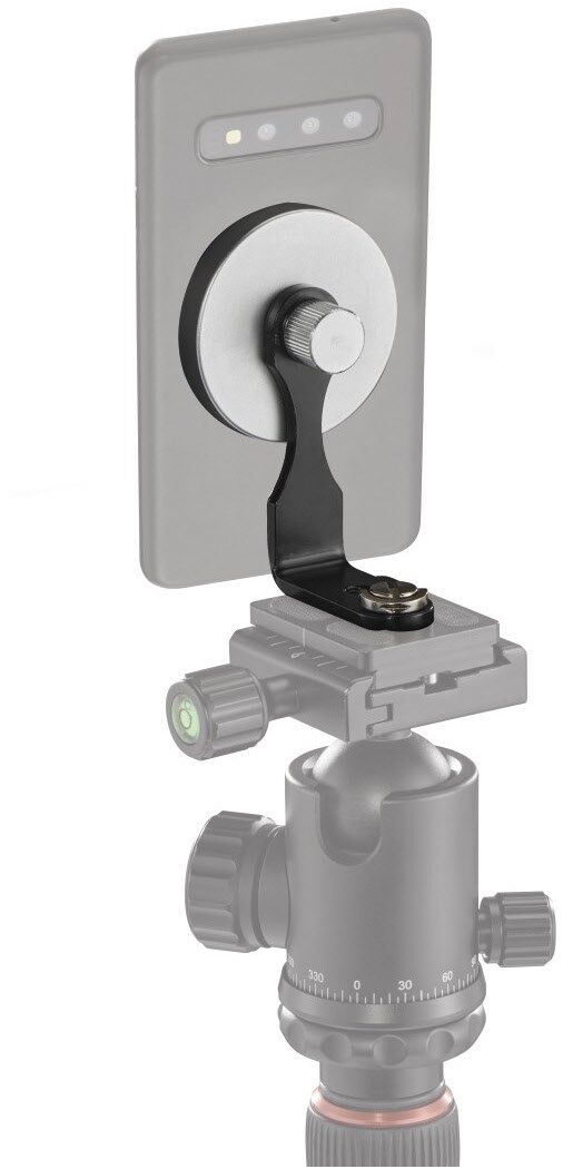 Kompakte Magnet-Halter zur sicheren Befestigung eines Smartphones an Kamerastative und ¼“-Anschlüsse