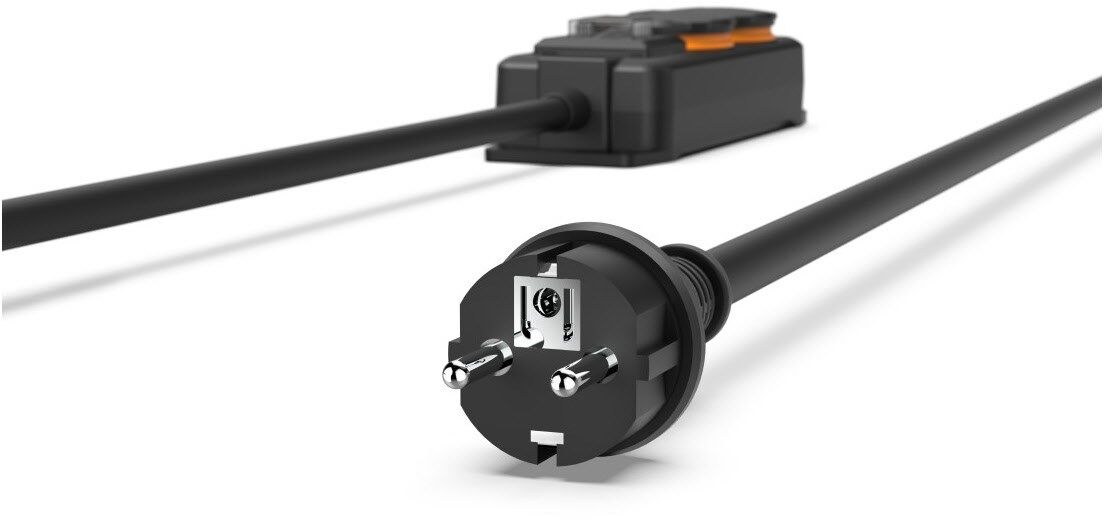 Zugentlastung und Knickschutz am Stecker und an der Steckdosenleiste schützen vor Kabelbruch