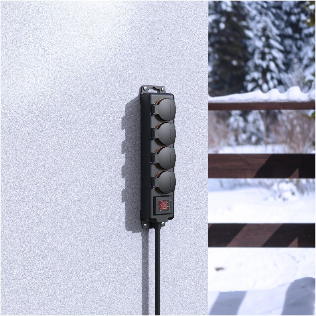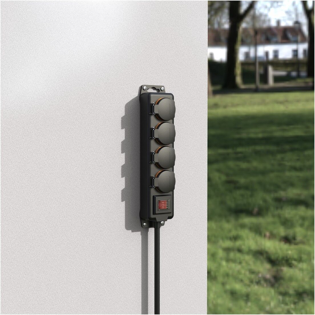 Mehrfachsteckdose zum Anschluss von bis zu vier elektrischen Geräten im Außenbereich
