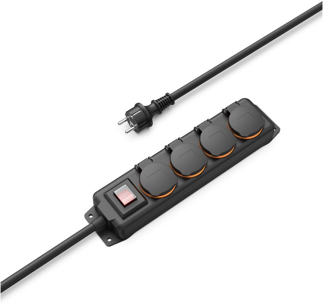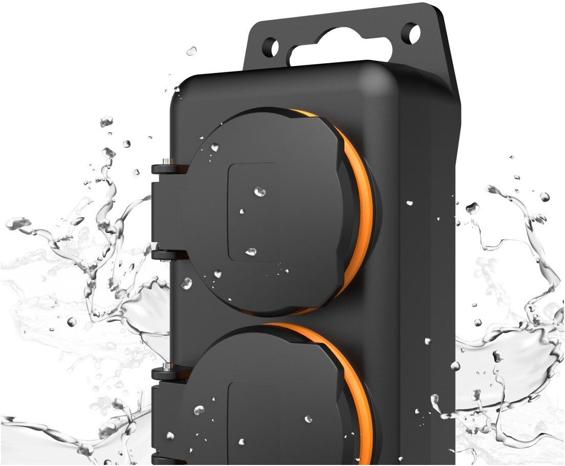 Schutzklasse IP44: spritzwassergeschütze Outdoor-Steckdosenleiste für Garten, Garage, Baustelle etc.