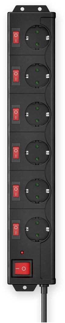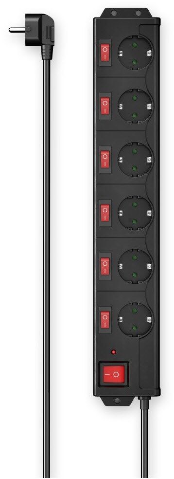Rot beleuchteter Ein-/Ausschalter, ideal um nicht benötigte und Stand-by-Geräte auszuschalten, 6 Schutzkontakt-Steckdosen