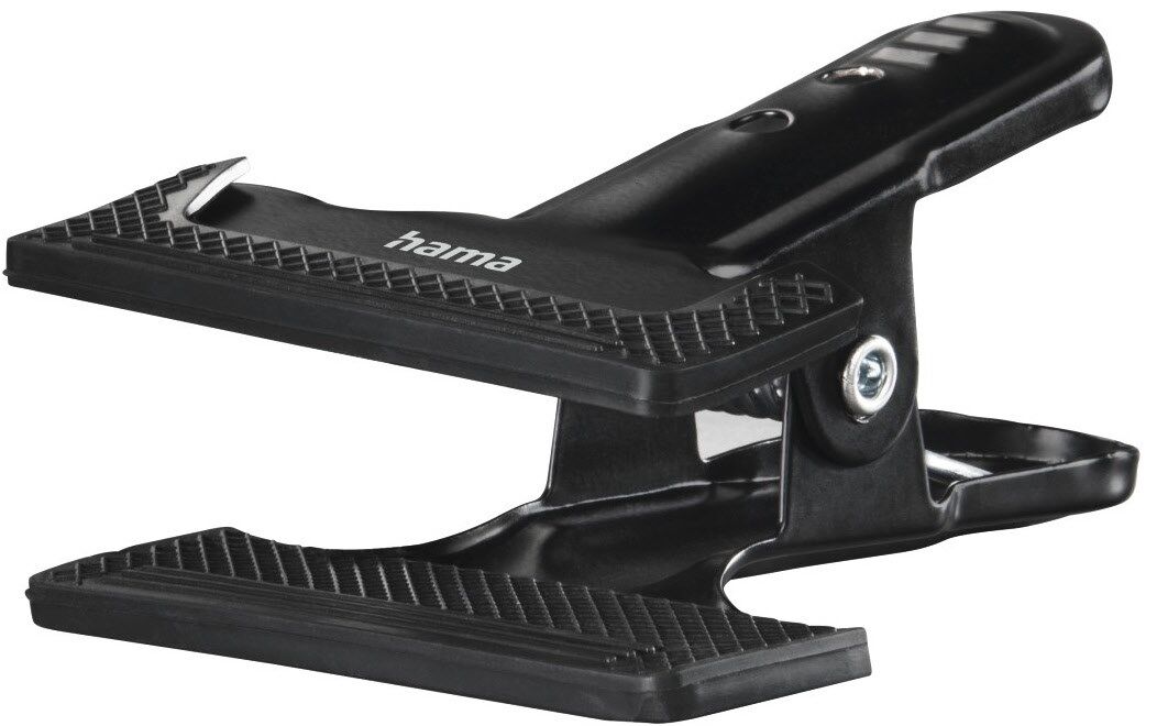 Praktische Fotoklemme universell einsetzbar zur Befestigung von Hintergründen, Greenscreens, Styroporplatten, Reflektoren usw. im Fotostudio und unterwegs
