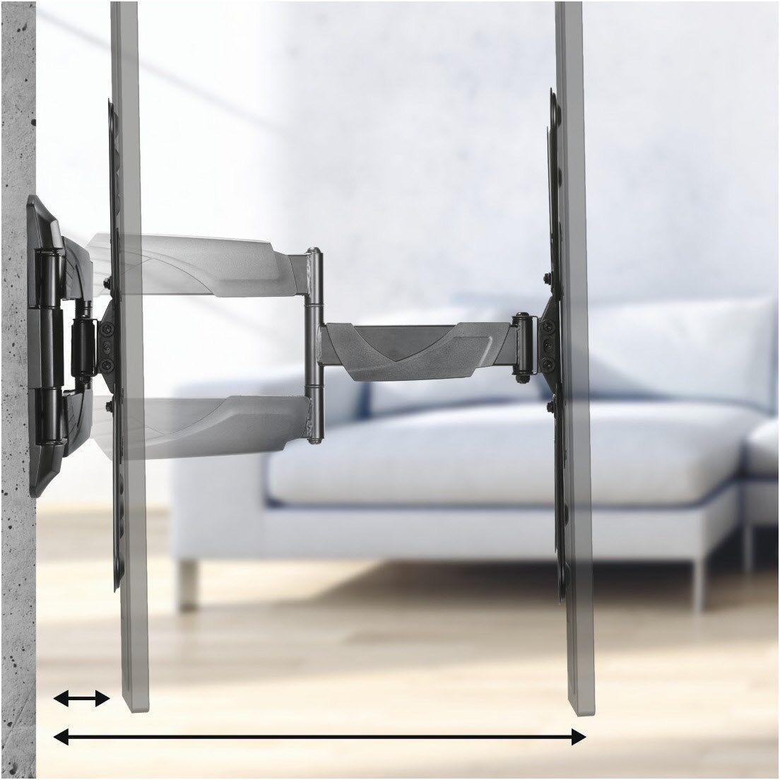 Volle Flexibilität im Heimkino: Ob Lieblingssessel oder Sofaecke - mit dieser vollbeweglichen Wandhalterung sitzen Film- und Serienjunkies immer in der VIP-Lounge, geeignet für Flachbildschirme mit einer Bildschirmdiagonale von 81 bis 165 cm (32" bis 65").