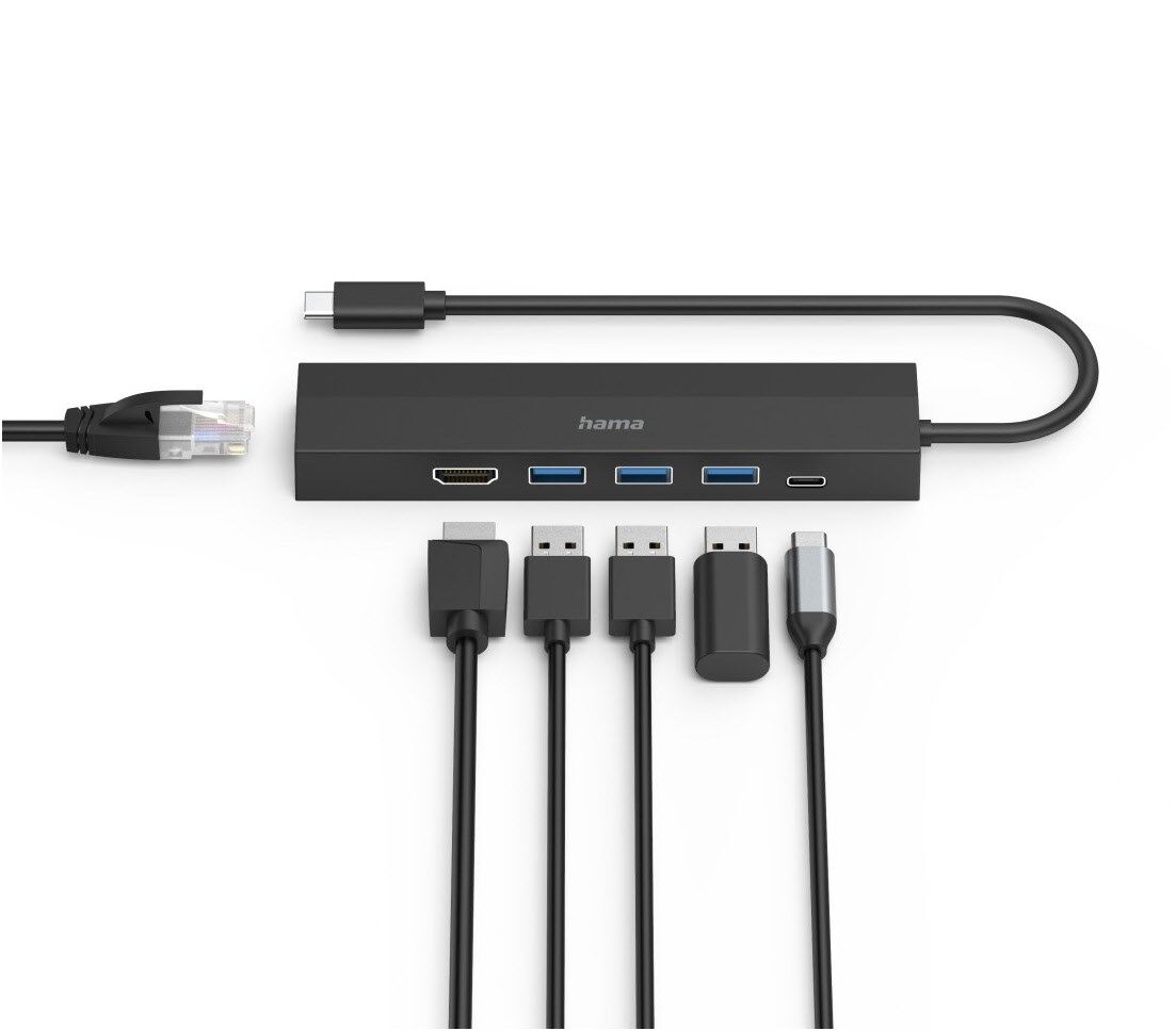 USB-C-Hub mit 6 Anschlüssen, wenn am PC, Notebook, MacBook, Tablet Steckplätze fehlen (bzw. erweitert werden sollen) oder über einen Stecker mehrere Geräte zentral verbunden/getrennt werden sollen