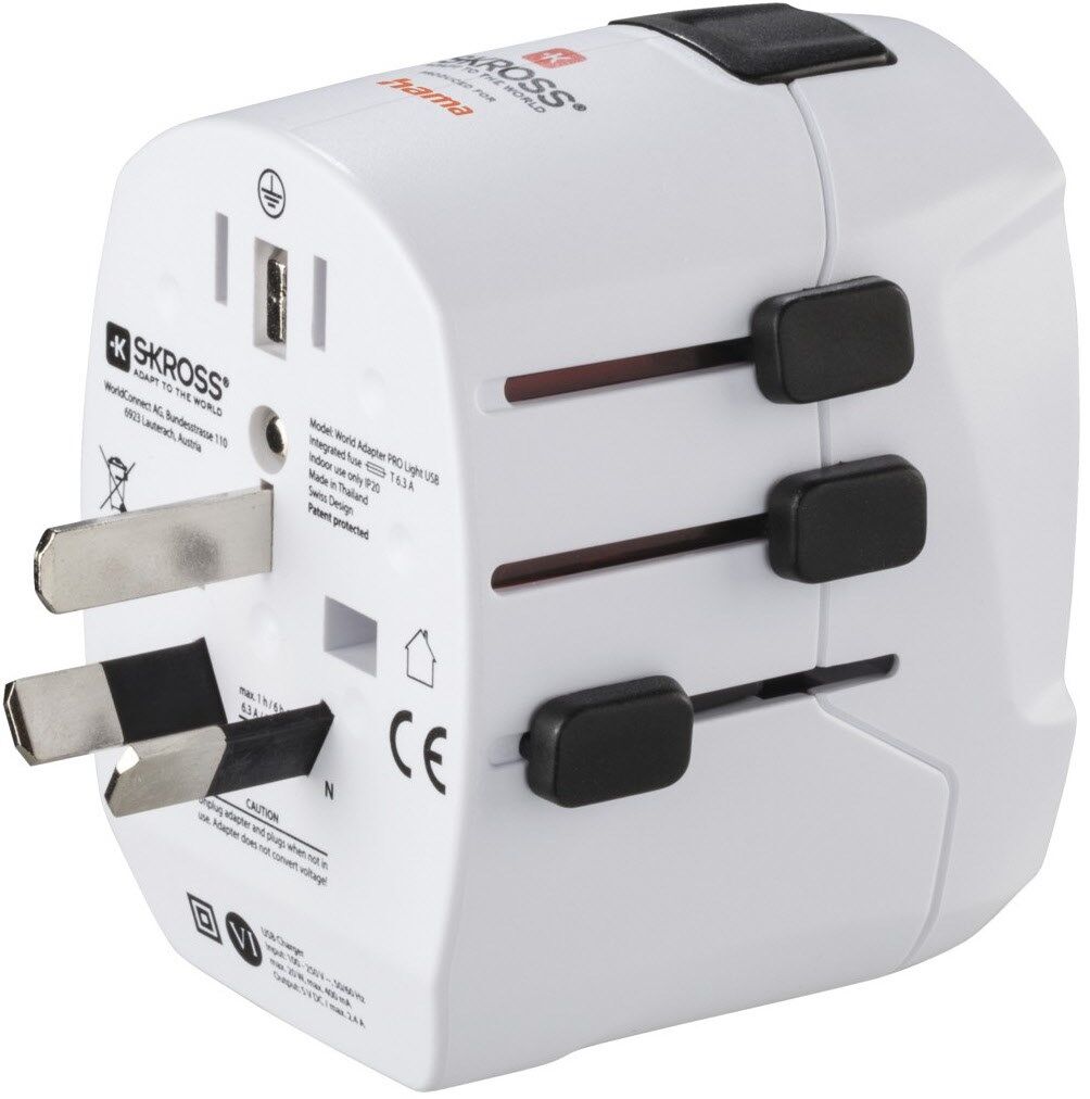 Ermöglicht den Anschluss von Elektrogeräten in bis zu 200 Ländern mit abweichenden Steckdosensystemen
