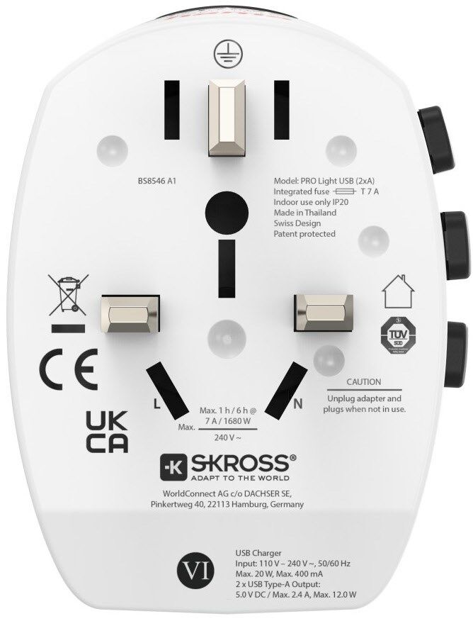 Zur Verwendung mit geerdeten und ungeerdeten Geräten wie Kameras, Rasierer und Smartphone-Ladegeräten, auch für leistungsstarke Geräte wie Laptops und Reiseföhns geeignet