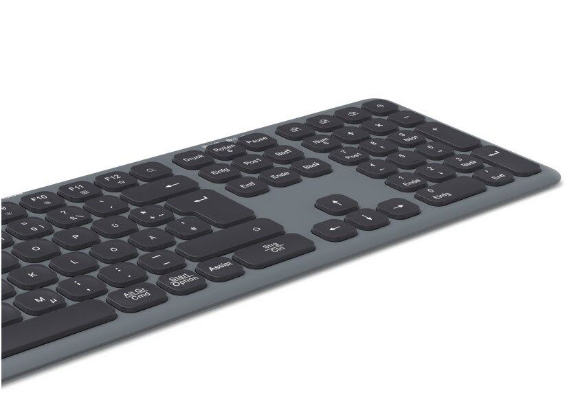 Full-Size mit allen Funktionen: Die 100%-Tastatur mit Nummernblock erfüllt sämtliche Anforderungen in Büro und Home-Office, separater Ein-/Ausschalter für die kabellose Tastatur