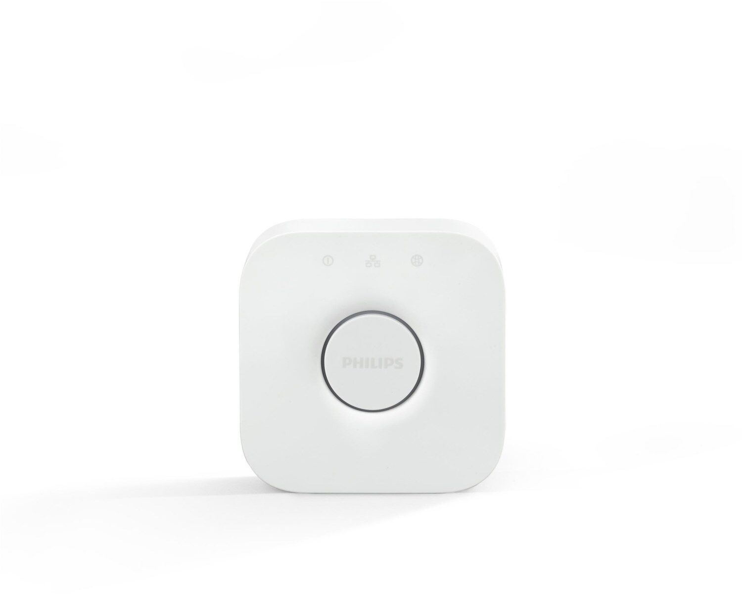 Philips Hue Bridge. Übertragungstechnik: Kabellos, Wireless-Technologien: ZigBee, Produktfarbe: Weiß. Energiequelle: AC, Ausgangsspannung: 5 V, Eingangsspannung AC-Adapter (Hue Bridge): 100-240 V. Mitgelieferte Kabel: LAN (RJ-45). Menge pro Packung: 1 Stück(e), Verpackungsbreite: 146 mm, Verpackungstiefe: 72 mm. Gewicht: 280 g, Breite Hue Bridge: 9,06 cm, Hue Bridge Länge: 9,09 cm