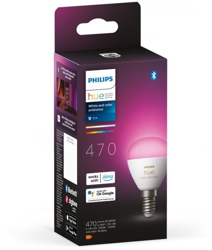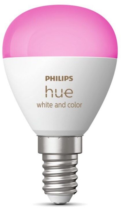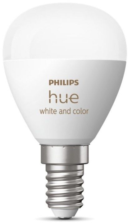 Mit der Philips Hue E14-Lampe in Tropfenform kannst Du Deine kleinsten Lampen und Leuchten in Dein smartes Philips Hue Lichtsystem integrieren. Die Lampe in Tropfenform ist etwa so groß wie ein Golfball. Daher passt sie auch dort hinein, wo längere E14-Lampen nicht passen. Die in den Kategorien White, White Ambiance und White & Color Ambiance erhältliche Lampe in Tropfenform bringt Millionen Schattierungen von weißem und farbigem Licht in jeden Bereich Deines Zuhauses.