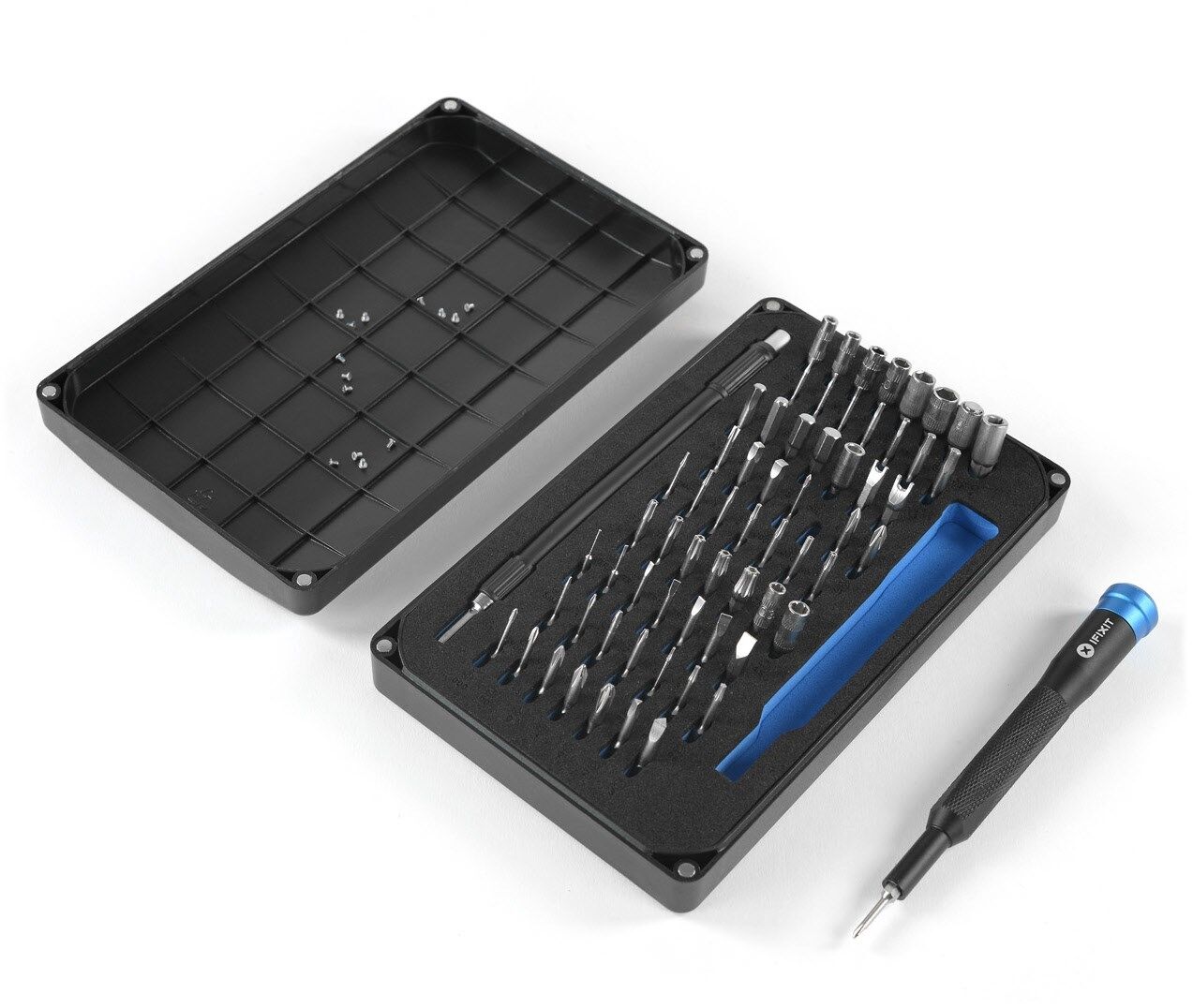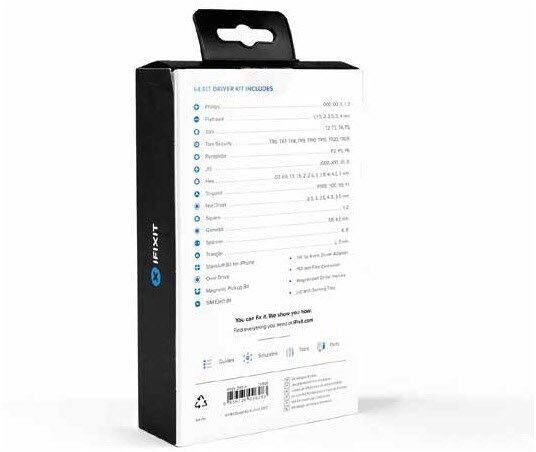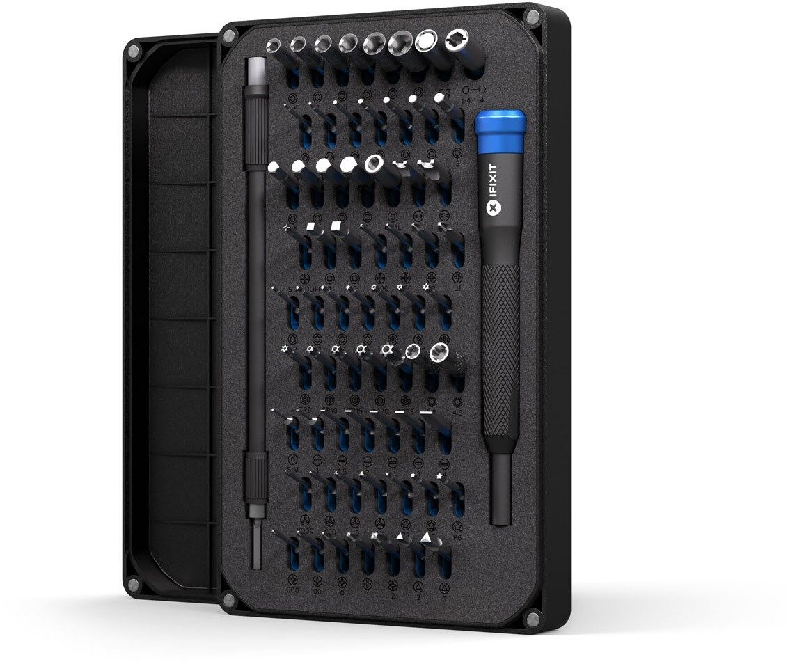 iFixit EU145299. Anzahl der bits: 64 Stück(e), Schraubendreher-Bits enthalten: Hex (metrisch), Mutterndreher, Pentalobe, Phillips, Sicherheitstorx, Maulschlüssel, Quadratisch,..., Phillips Schraubendreher-Bits: PH 0,PH 00,PH 000,PH 1,PH 2. Schaftform: Hexagonal, Hüllenmaterial: ABS