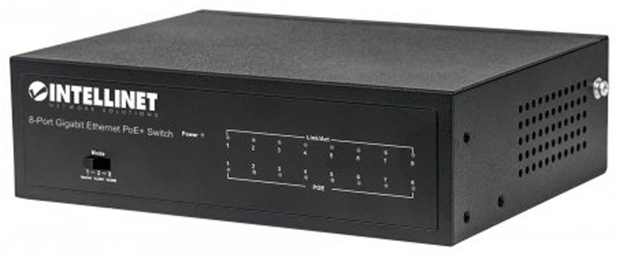 - Strom- und Datenverbindung für bis zu acht PoE-Netzwerkgeräte