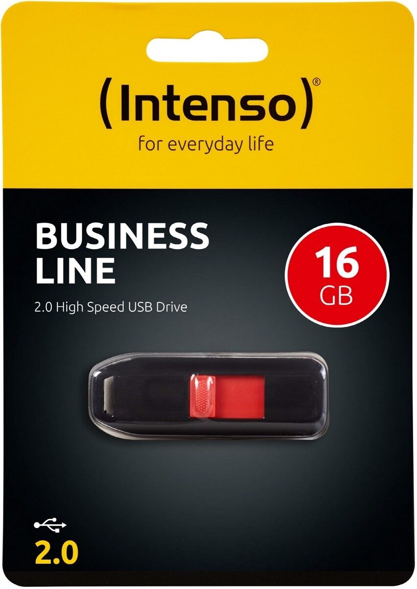 Intenso 16GB USB2.0. Kapazität: 16 GB, Geräteschnittstelle: USB Typ-A, USB-Version: 2.0, Lesegeschwindigkeit: 28 MB/s, Schreibgeschwindigkeit: 6,5 MB/s. Formfaktor: Kappe. Gewicht: 6 g. Produktfarbe: Schwarz, Rot