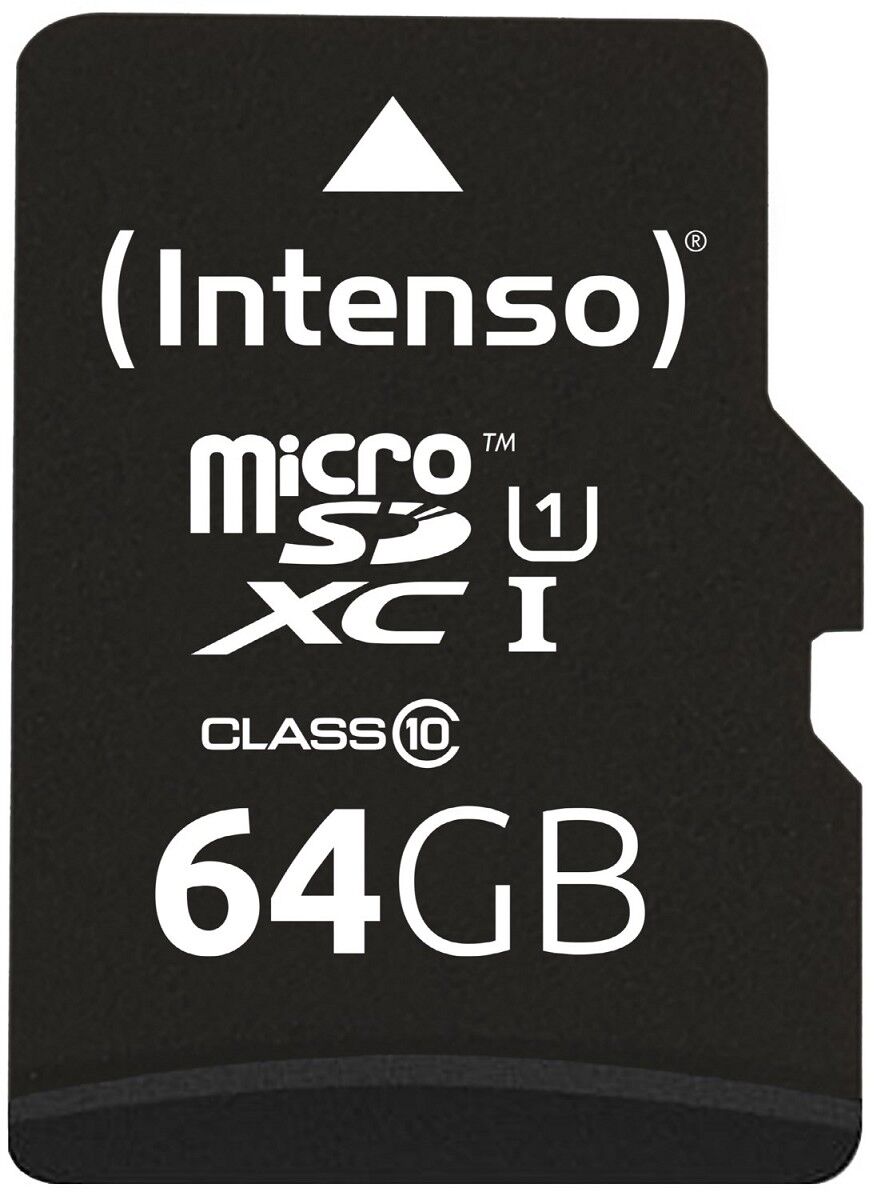 Intenso 3423490. Kapazität: 64 GB, Flash Card Typ: MicroSDXC, Flash-Memory-Klasse: Klasse 10, Interner Speichertyp: UHS-I, Lesegeschwindigkeit: 90 MB/s, UHS Speed Klasse: Class 1 (U1)
