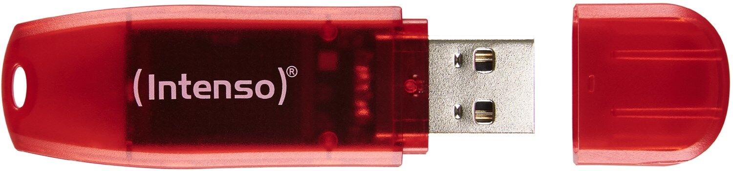 Intenso Rainbow Line. Kapazität: 128 GB, Geräteschnittstelle: USB Typ-A, USB-Version: 2.0, Lesegeschwindigkeit: 28 MB/s, Schreibgeschwindigkeit: 6,5 MB/s. Formfaktor: Kappe. Gewicht: 6 g. Produktfarbe: Rot, Transparent