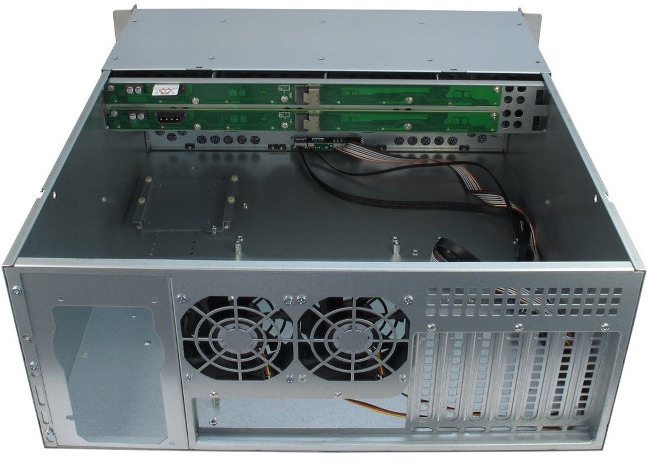 So bietet das 4U 4408 die Möglichkeit maximal acht 2,5" oder 3,5" Hot-Swap Festplatten sowie eine interne 2,5" oder 3,5" Festplatte (bei einer 2,5" Festplatte mit nur 9,5mm Bauhöhe auch eine 3,5" HDD gleichzeitig) zu verbauen. Das 4U 4408 ist mit zwei serienmäßig eingebauten 80mm Lüftern ausgestattet.