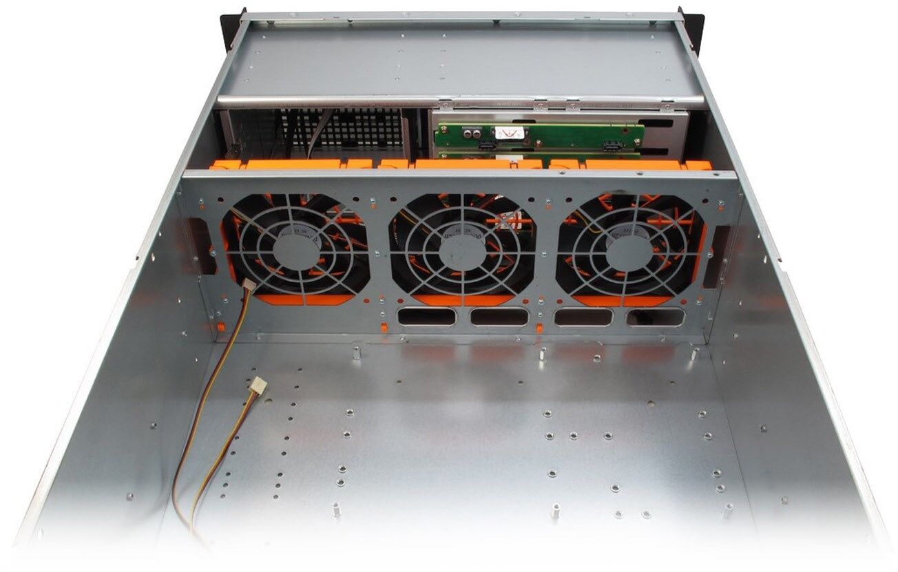 So bietet das 4U 4410 die Möglichkeit maximal zehn 2,5" oder 3,5" Hot-Swap Festplatten, vier interne 2,5" Festplatten und drei 5,25" Laufwerke extern zu verbauen. Das 4U 4410 verfügt über drei Hot-Swap 120mm Lüfter, die sich intern direkt hinter den Laufwerkshalterungen befinden. Zwei weitere 80mm Lüfter an der Rückseite sorgen zudem zuverlässig für eine optimale Kühlung.
