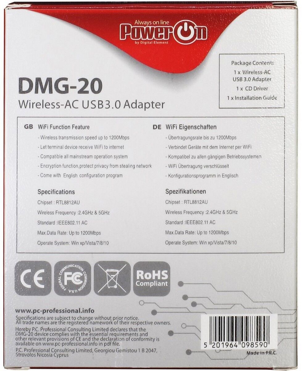 Der DMG-20 ermöglicht Ihnen, Ihr Notebook oder Ihren PC mit einem vorhandenen WLAN-Netzwerk (802.11ac) zu verbinden, um dann mit einer Geschwindigkeit von bis zu 1200Mbps auf das Netzwerk zugreifen zu können. Trotz seiner kompakten Bauform werden hohe Geschwindigkeiten und eine sehr gute Funkabdeckung erreicht. Bei Nichtgebrauch lassen sich die empfindlichen Kontakte durch eine Schutzkappe verdecken.