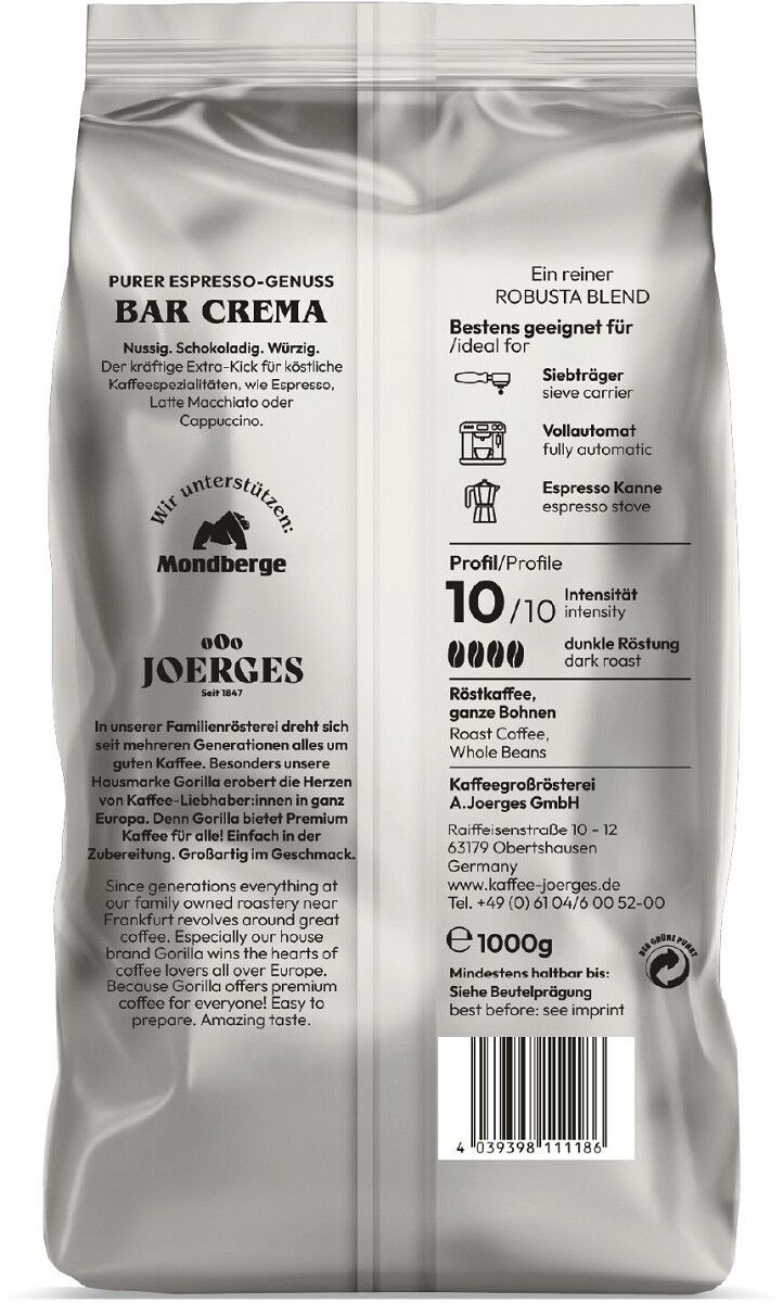 JOERGES Gorilla Espresso Bar Crema (1000g) (silber)