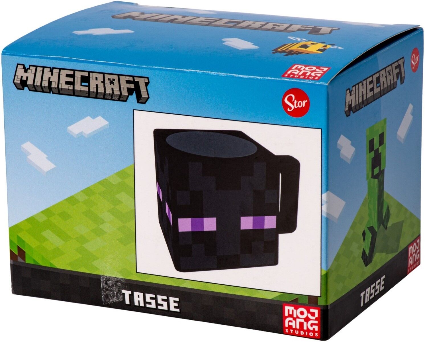 Die mikrowellengeeignete Tasse mit einem Fassungsvermögen von ca. 290 ml, zeichnet sich durch ein Minecraft-typisches Motiv aus – auf drei Seiten der Tasse ist das Gesicht der bekannten Kreatur Enderman zu sehen
